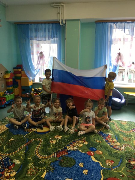 В детском саду дети приняли участие в беседе "Моя Родина - Россия", посмотрели видео-ролик "История России", рисовали флаг России, играли в дидактическую игру "Найди город" и словесную игру "Города".