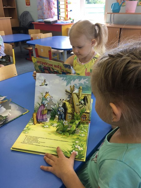 Младшие дошкольники с воспитателем Чудиновой О.В. рассматривали и читали книги, вспомнили правила обращения с ними. Понравилась малышам игра "Продолжи...", где дети продолжали сказку или стихотворение. А после дневного сна для книг будет открыта "Книжкина лечебница", где дети произведут ремонт книг.